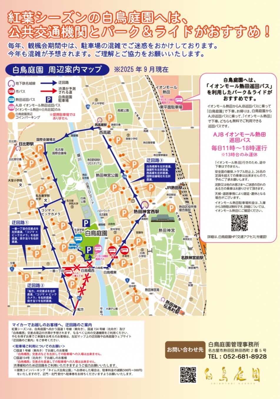 紅葉シーズンは駐車場までの道路が非常に混雑いたします。迂回路をご利用ください。