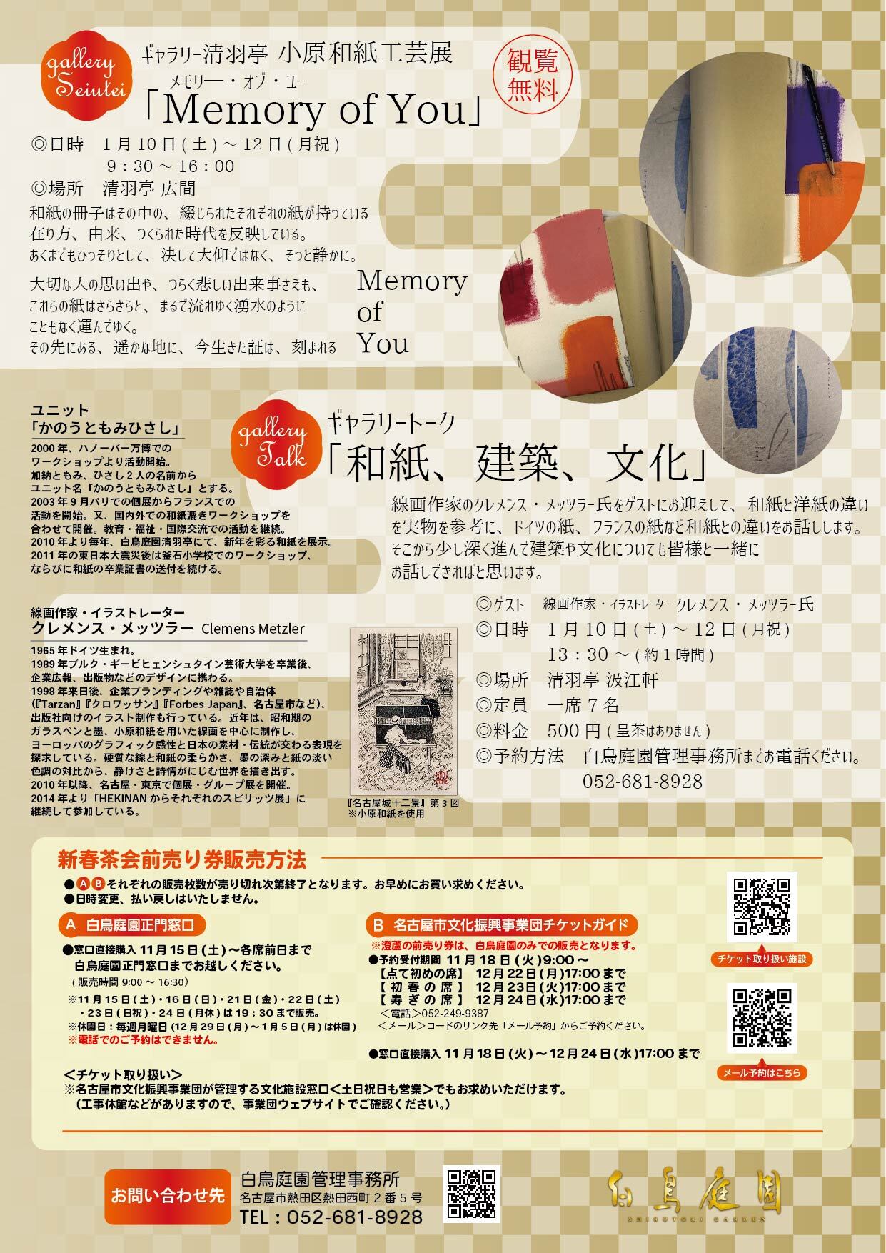 ※前売りは、白鳥庭園正門受付、名古屋市文化振興事業団チケットガイドにて販売いたします。