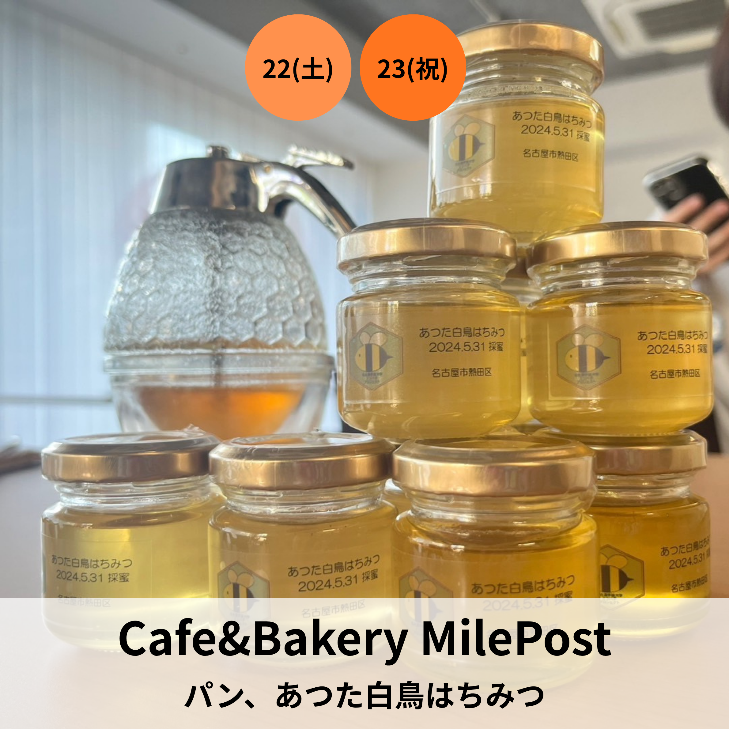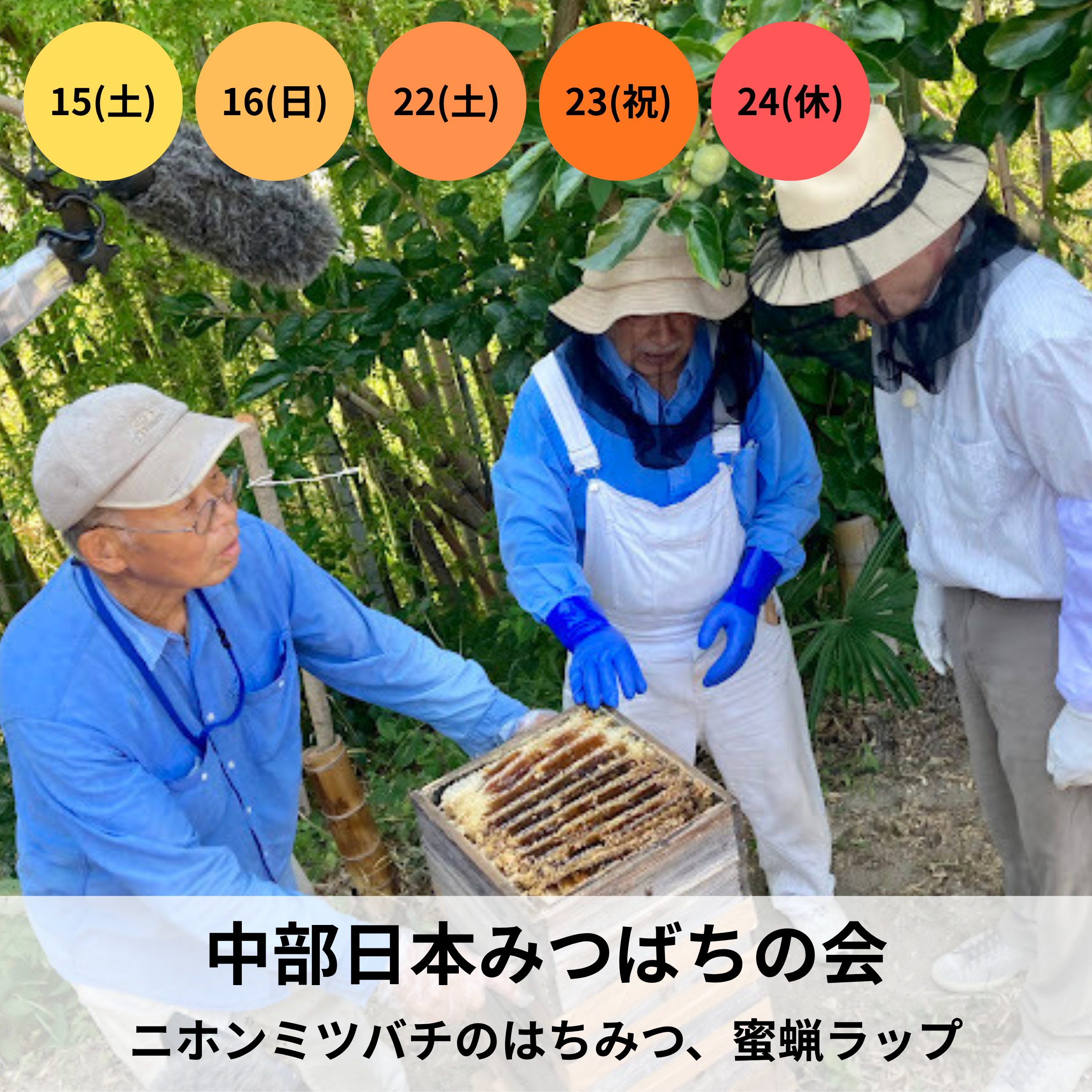 名古屋学院大学みつばちプロジェクト、銀座ミツバチプロジェクト、中部日本みつばちの会、マルハチ・プロジェクト、みつばちバーヤ、名身連第一ワークス・第一デイサービスなどの養蜂に取り組む団体が、私たちの食生活に大きな恩恵を与えてくれるミツバチの大切さについてお話します。トークの後は、各団体のはちみつ味比べ対決!お客様に試食・投票していただきます。