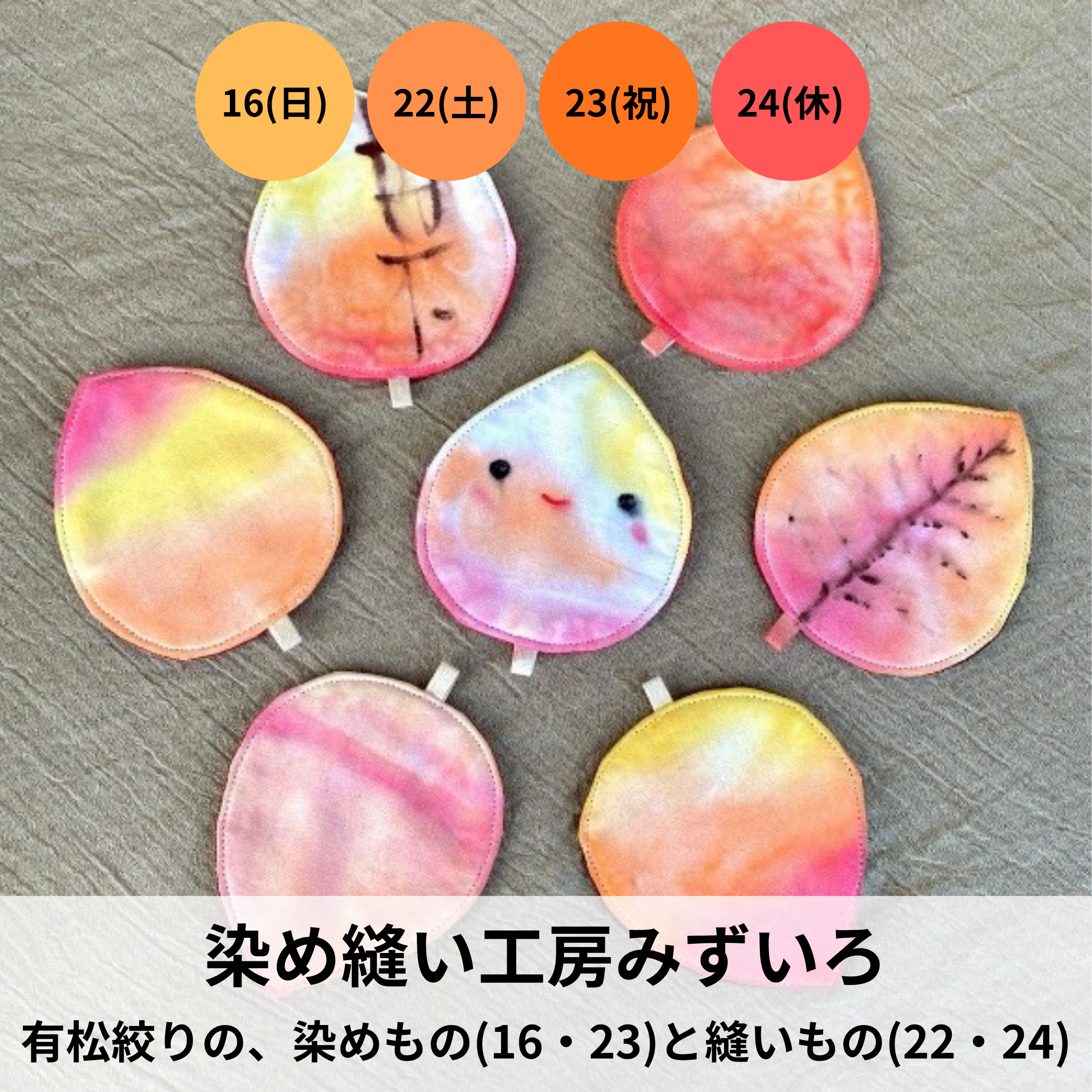 ◎日時 11月15日(土)、16日(日)、22日(土)、23日(日祝)、24日(月休) 10:00~16:00