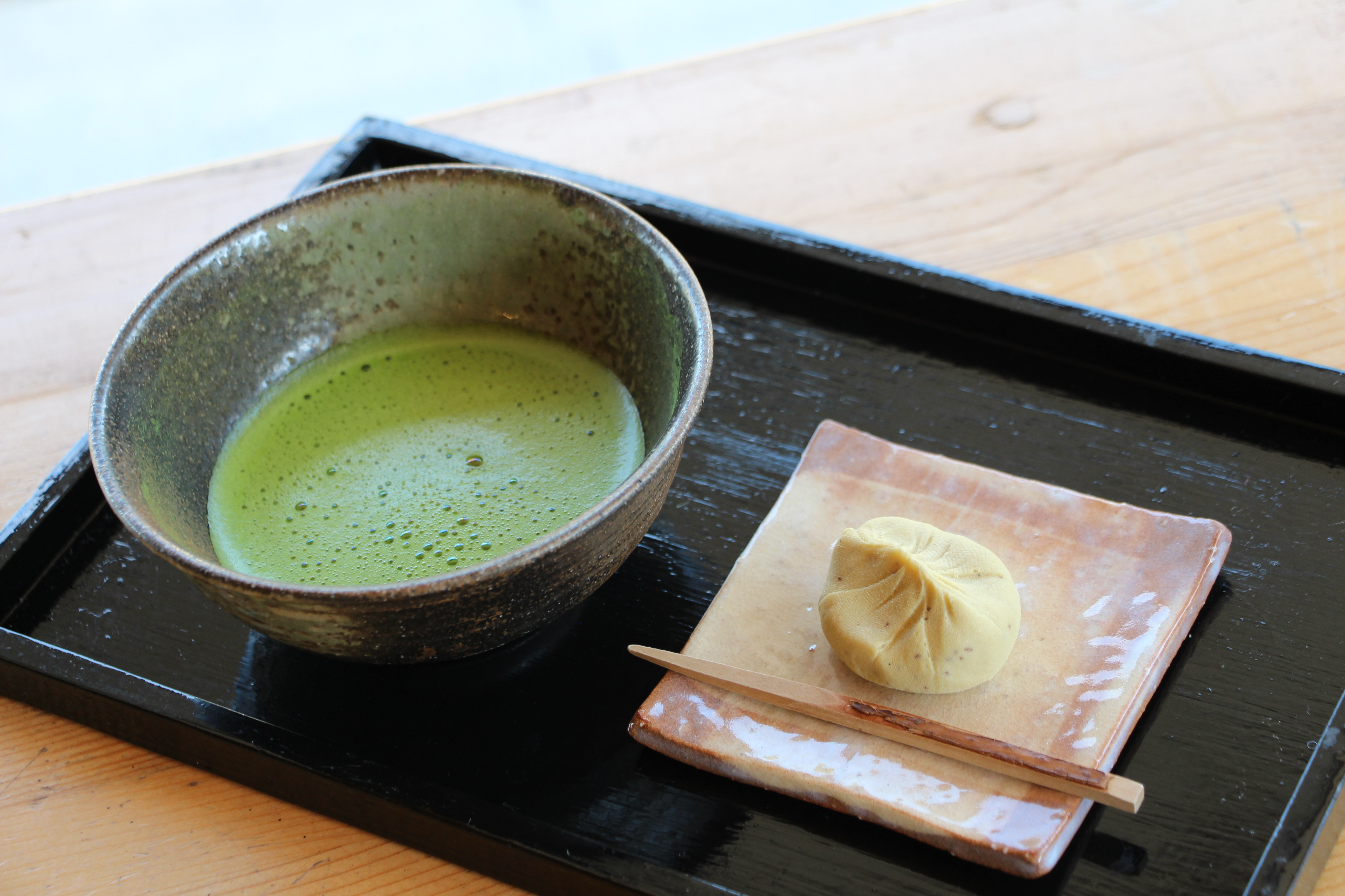 お抹茶と恵那川上屋の栗きんとんを秋空の下でお召し上がりいただけます。